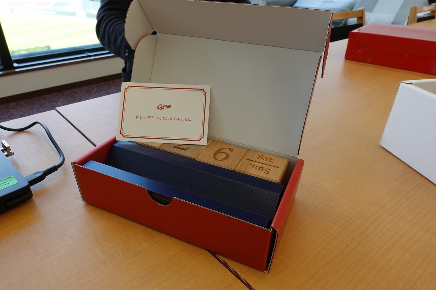 田仲様:コロナ禍でお客様がなかなか観戦に来られなかった2021年に、年間指定席の特典として社長からファンの方へメッセージカードを送りました。これは、球場に足を運びづらいお客様の気持ちをオンワードさんが汲んで実施したものです。併せて、球場に来られなくてもカープに常に触れていられるように万年カレンダーもご提案いただきました。フォントやカラーなどを何度も修正し、箱を開けたときにシーズン開幕日の日付が目に入るようにしてお渡しするなど、細かい部分にもこだわりました。